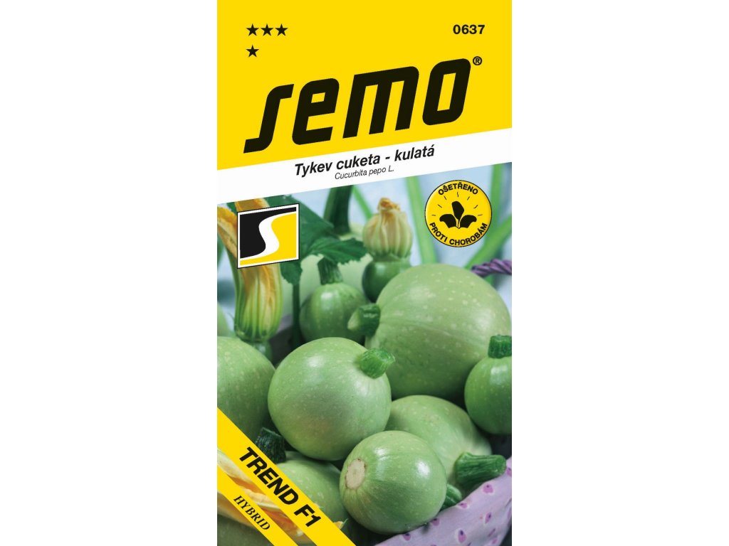 První partenokarpická cuketa, která nepotřebuje k vývoji plodů oplodnění. Plody jsou kulaté, světle zelené, s pevnější dužninou, která při přezrávání pomaleji měkne. Nejlahodnější jsou mladé plody o průměru 8 až 10 cm. Vegetační doba do první sklizně 55 – 65 dní. TREND má rozkladitější a vzrůstnější keříčky než klasické cukety. Pěstujte ji proto v širším sponu - cca 150 x 100 cm. \