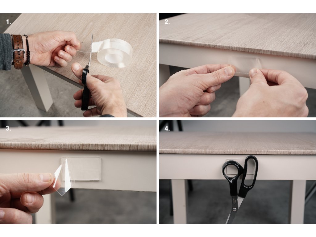 Pomocníkem se stane taky v pracovnách, kancelářích nebo obývacích pokojích. Díky NANO pásce můžete úhledně uklidit kabely od počítačů a svítidel na spodní stranu desky stolu a nic vám tak pohledově nebude rušit vaši kancelář nebo obývák.
