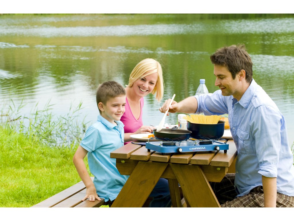 Vařič PB dvouhořák BASE CAMP. - jednoduchý dvouplotýnkový vařič - dva oddělené výkonné hořáky - pracuje na běžnou 10 kg nebo 2 kg PB lahev - výkon hořáků: 2 x 1600 W - doba varu: 7,30 min. - spotřeba: 2 x 116 g/h - rozměry: 43 x 24 x 7,5 cm - hmotnost: 1,5 kg - zdroj energie: PB lahev 5 kg nebo 10 kg, nebo R907 s regulátorem Campingaz - pracuje na běžnou 10 kg PB lahev, pro připojení na 2 kg PB lahev je nutné zakoupit odtlačný ventil Pozor, použijte prověřenou připojovací sadu včetně regulátoru tlaku. Připojovací sada na PB lahev není součástí výrobku, prodává se zvlášť.Doplňkové parametry