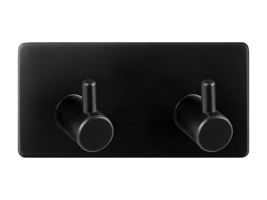 Věšák 9 x 4,5 x 2,03 cm, 2 háčky, samolepicí, kov. ČER. rozměry: 9 x 4,5 x 2,03 cm materiál: kov barva: černá nosnost: až 4 kg Samolepicí háček dvojitý, lakovaný kov.Doplňkové parametry