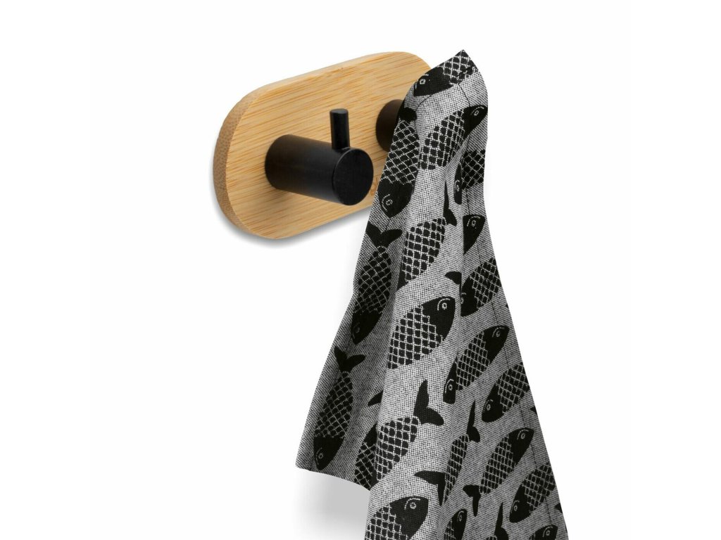 Věšák 9 x 4,5 x 3,5 cm, 2 háčky, samolepící, bambus / kov. ČER. rozměry: 9 x 4,5 x 3,5 cm materiál: bambus, kov barva: černá - můžete jej namontovat bez vrtání do zdi nebo poškození dlaždic - lze na něj stabilně pověsit ručníky (max. nosnost 2 kg) - elegantním způsob pro uspořádat vaší koupelny - můžete jej použít v podmínkách zvýšené vlhkosti Nástěnný věšák je vyroben z odolných materiálů (kov a bambusové dřevo). Instalace pomocí silné 3M lepicí pásky. Model s dvojitým černým háčkem. Stylový design a možnost vytvořit ucelené koupelnové vybavení s produky 330118 nebo 330116. K připevnění nepotřebujete žádné nářadí, nemusíte tak vrtat do zdi, ničit obklady nebo se bát nepořádku. Stačí vybrat vhodné místo pro nástěnný věšák a přilepit.Doplňkové parametry