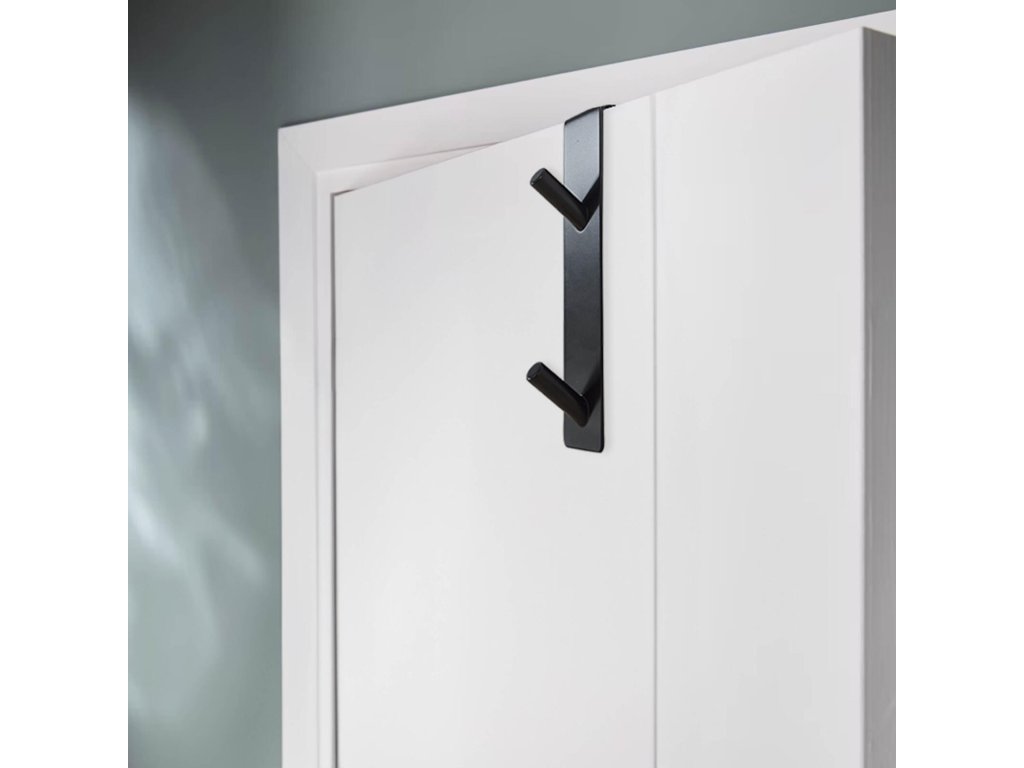 Věšák na dveře 2 háčky 17,6 x 5,5 x 3 cm, nerez ČER. rozměry: 17,6 x 5,5 x 3 cm materiál: nerez barva: černá Věšák na dveře lze jednoduchým způsobem bez montáže zavěsit přes horní hranu interiérových dveří.Doplňkové parametry