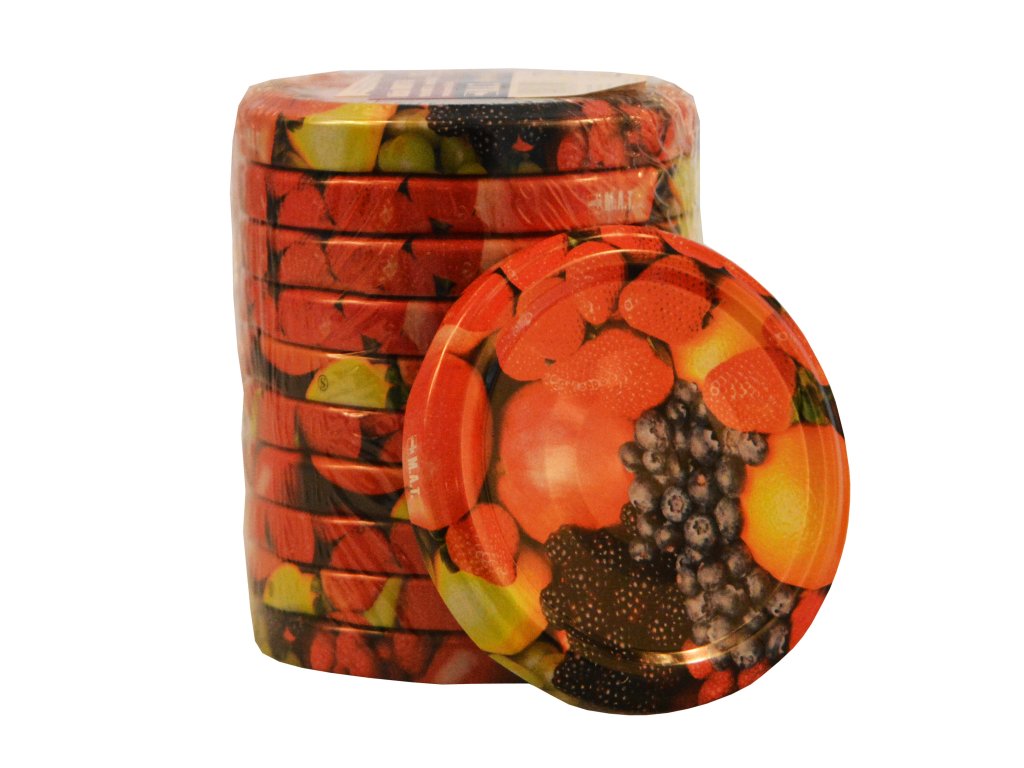 průměr: 66 mm dekor ovoce 10 ks Závitové víčko TWIST 66 ke sklenici na zavařování je víčko se šroubovacím uzávěrem typu RTS.Doplňkové parametry