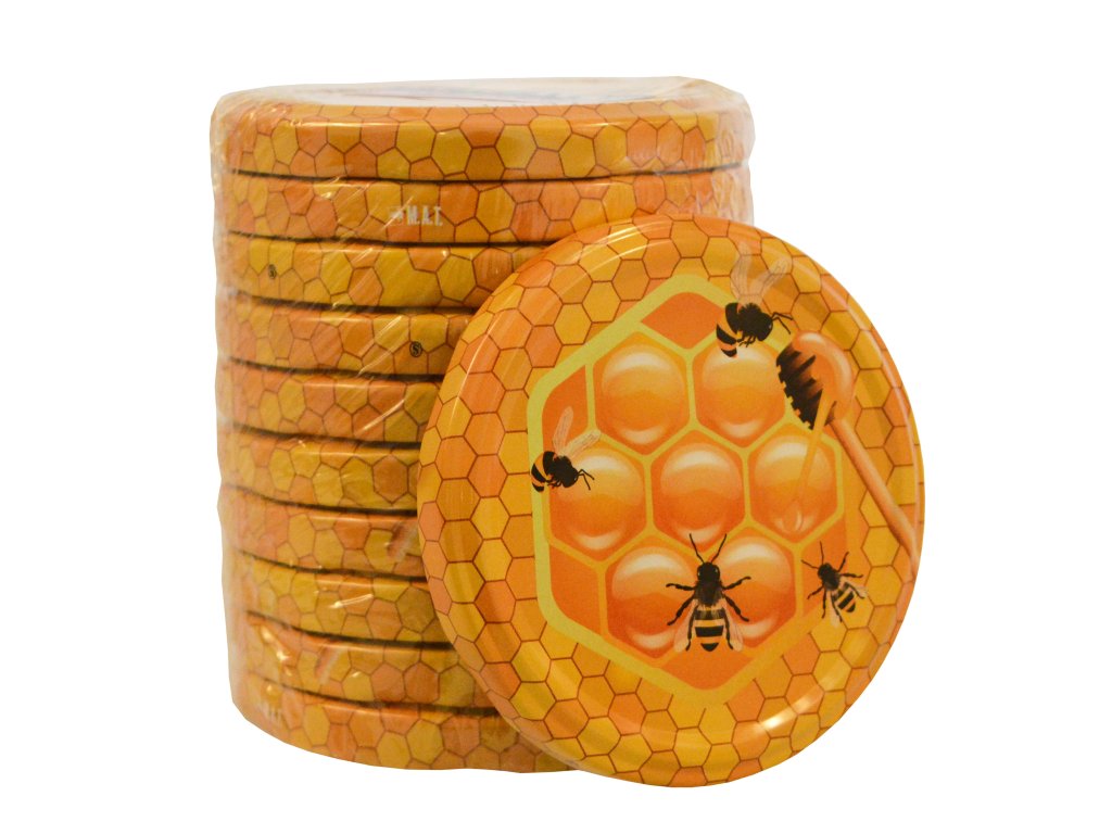 průměr: 82 mm dekor med 10 ks Závitové víčko TWIST 82 ke sklenici na zavařování je víčko se šroubovacím uzávěrem typu RSB.Doplňkové parametry
