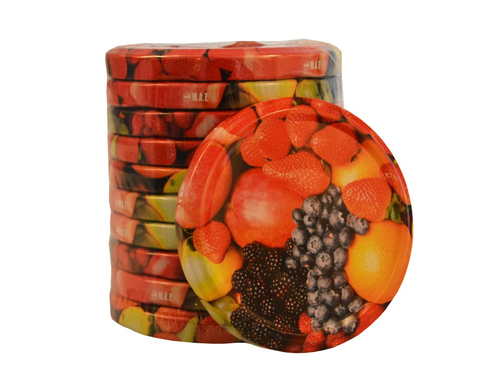 průměr: 82 mm dekor ovoce 10 ks Závitové víčko TWIST 82 ke sklenici na zavařování je víčko se šroubovacím uzávěrem typu RTS.Doplňkové parametry