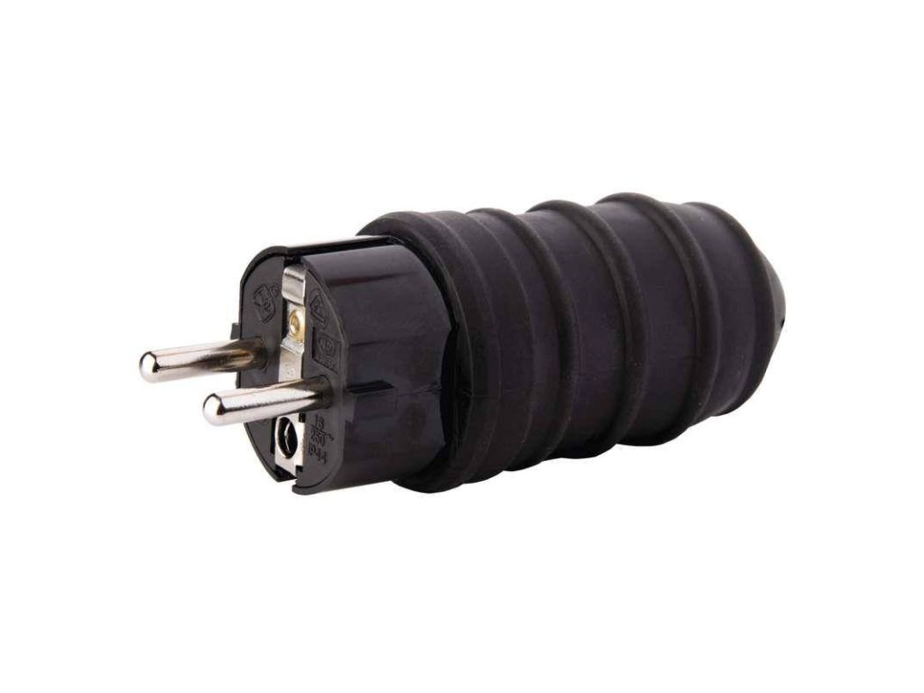 Vidlice gumová přímá, 250V / 16A max., černá