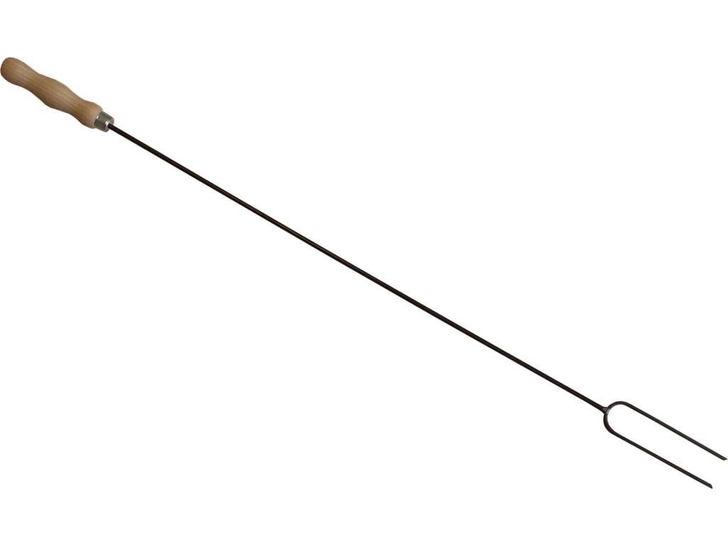 Univerzální vidlice s dřevěnou tvarovanou voskovanou ručkou o rozměru 28x130mm. Vidlice je vyrobena z oceli - průměr 5mm s dvěma bodci. Délka bodců - 14,5cm. Rozteč bodců - 3cm. Celková délka napichovací vidlice je 95cm.