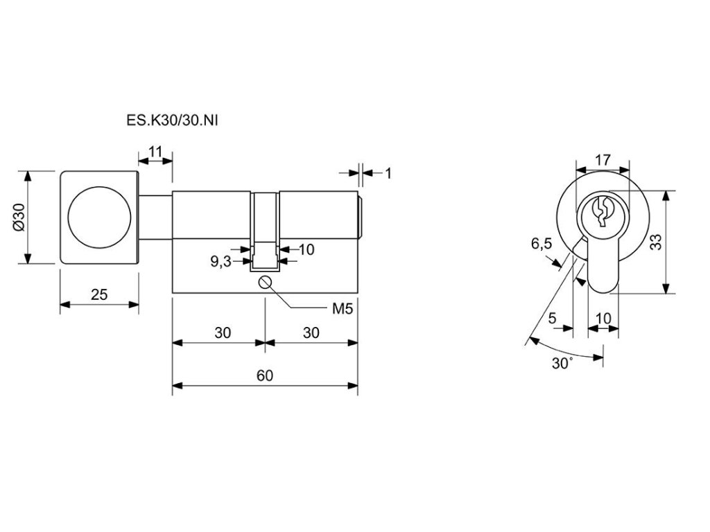 vložka cylindrická K30+30 s knoflíkem 6kl. Ni, 3.třída bezp.RICHTER