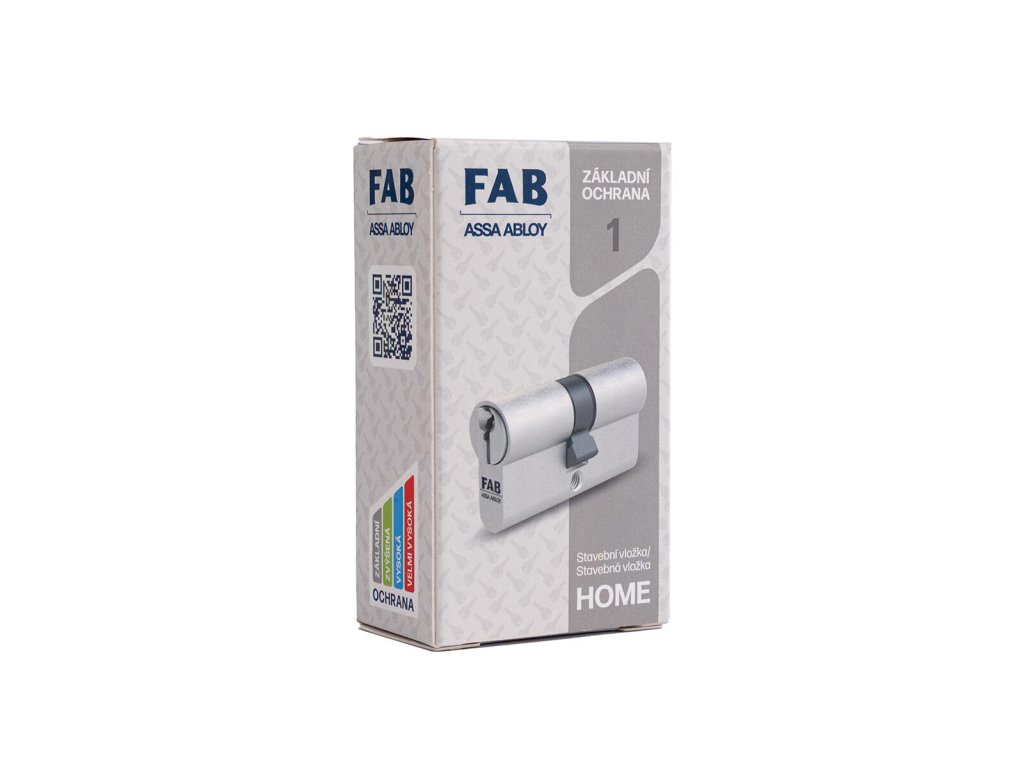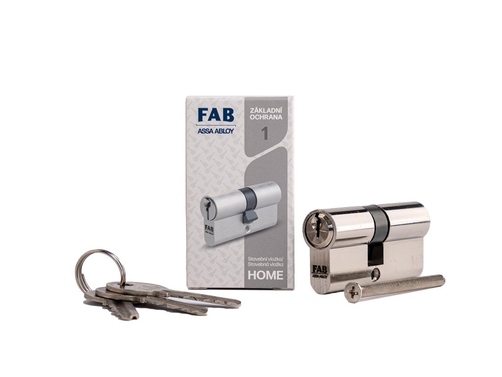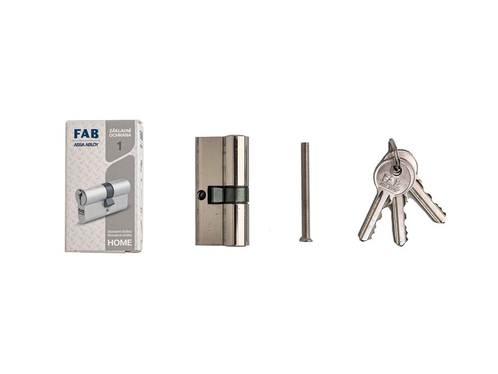 Vložka cylindrická stavební 1H.00/D, 30/35, 3 klíče, Ms. Stavební cylindrická vložak FAB 1 HOME je určená pro dveře vyžadující pouze dočasné uzamčení po dobu stavby, základní úroveň zabezpečení. 5ti stavítkový uzamykací systém. Těleso i bubínek ze slitiny zinku Zamak. V balení 3 ocelové krátké klíče.Doplňkové parametry