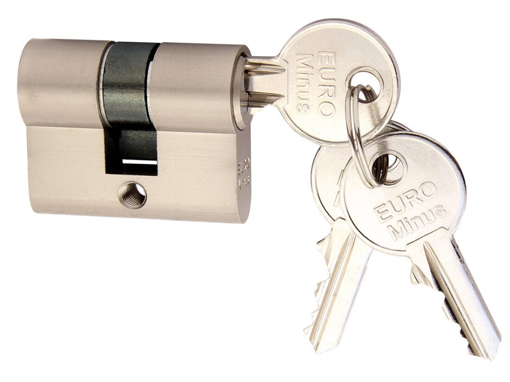 Vložka stavební EURO MINUS 20+35, 3 klíče, Ni, RICHTER. materiál vložky a klíčů: mosaz povrchová úprava: matný nikl (Ni) balení obsahuje: 3 ks klíčů, 2 ks šroubů 50 + 60 mm Stavební vložka Euro Minus. Extra krátká 4stavítková (pro stranu 20 mm) nebo 5stavítková (pro stranu od 25 mm) vložka. Možnost společného uzávěru - „SU“. Volně kopírovatelný klíč.Doplňkové parametry
