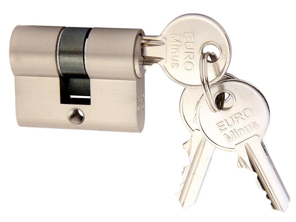 Vložka stavební EURO MINUS 25+25, 3 klíče, Ni, RICHTER. materiál vložky a klíčů: mosaz povrchová úprava: matný nikl (Ni) balení obsahuje: 3 ks klíčů, 2 ks šroubů 50 + 60 mm Stavební vložka Euro Minus. Extra krátká 4stavítková (pro stranu 20 mm) nebo 5stavítková (pro stranu od 25 mm) vložka. Možnost společného uzávěru - „SU“. Volně kopírovatelný klíč.Doplňkové parametry