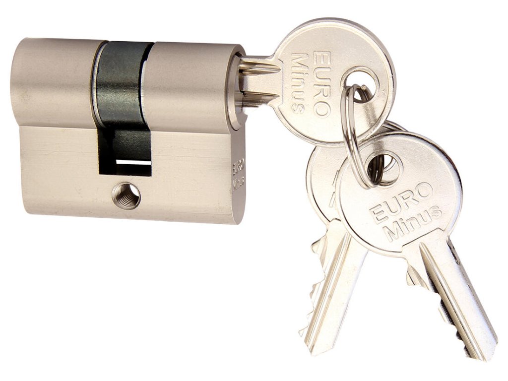 Vložka stavební EURO MINUS 25+30, 3 klíče, Ni, RICHTER. materiál vložky a klíčů: mosaz povrchová úprava: matný nikl (Ni) balení obsahuje: 3 ks klíčů, 2 ks šroubů 50 + 60 mm Stavební vložka Euro Minus. Extra krátká 4stavítková (pro stranu 20 mm) nebo 5stavítková (pro stranu od 25 mm) vložka. Možnost společného uzávěru - „SU“. Volně kopírovatelný klíč.Doplňkové parametry