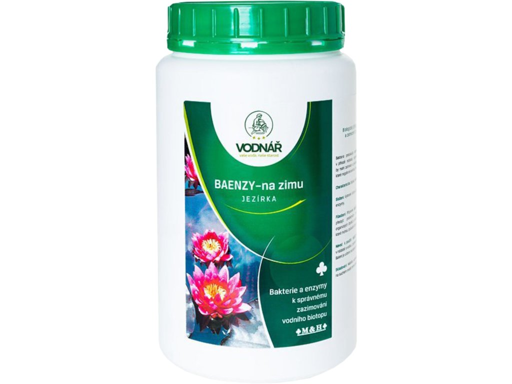 Biologický přípravek k odbourání nadměrného množství organických látek a zamezení produkce jedovatých plynů pod ledem v zimních měsících. Bakterie se zachytí na vhodných místech ( filtr, kačírek, rostliny a jejich odumřelé části, dno apod. ) kde se rozmnoží. Kvůli klesající teplotě vody se zpomaluje metabolismus všech organismů a tím i degradace organické hmoty. Při rozkladu organických zbytků se spotřebovává kyslík a mohou vznikat nebezpečné plyny jako sirovodík, čpavek a metan. Led brání vzájemné výměně plynů a může dojít k úhynu ryb. Přípravek Baenzy - na zimu pomáhá předejít k výše zmíněným problémům.