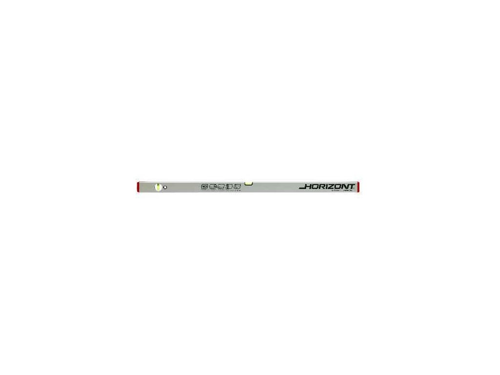 Vodováha 1200 mm HORIZONT se používá ve stavebnictví ke kontrole vodorovné nebo svislé plochy, své využití však najde i při běžných pracích v domácnosti. - délka: 1200 mm - 2 libely - přesnost 0,5 mm/m = 0,0285° - eloxovaný otěruvzdorný povrch - tloušťka stěny ALU profilu 1,5 mm - kapalina v libelách je UV stabilizovaná a fluorescenční - horizontální optická libela - usnadňuje a zvyšuje přesnost měření - vodováha je odolná proti provozním nárazům - 10 let záruka na libely - KAŽDÝ KUS ELEKTRONICKY TESTOVÁN Horizont vodováha se dvěma libelami, přesnost 0,5mm/m = 0,0285°, eloxovaný otěruvzdorný povrch, tloušťka stěny ALU profilu 1,5mm, kapalina v libelách je UV stabilizovaná a fluorescenční, horizontální optická libela - usnadňuje a zvyšuje přesnost měření, vodováha je odolná proti provozním nárazům, 10 let záruka na libely, KAŽDÝ KUS ELEKTRONICKY TESTOVÁN.Doplňkové parametry