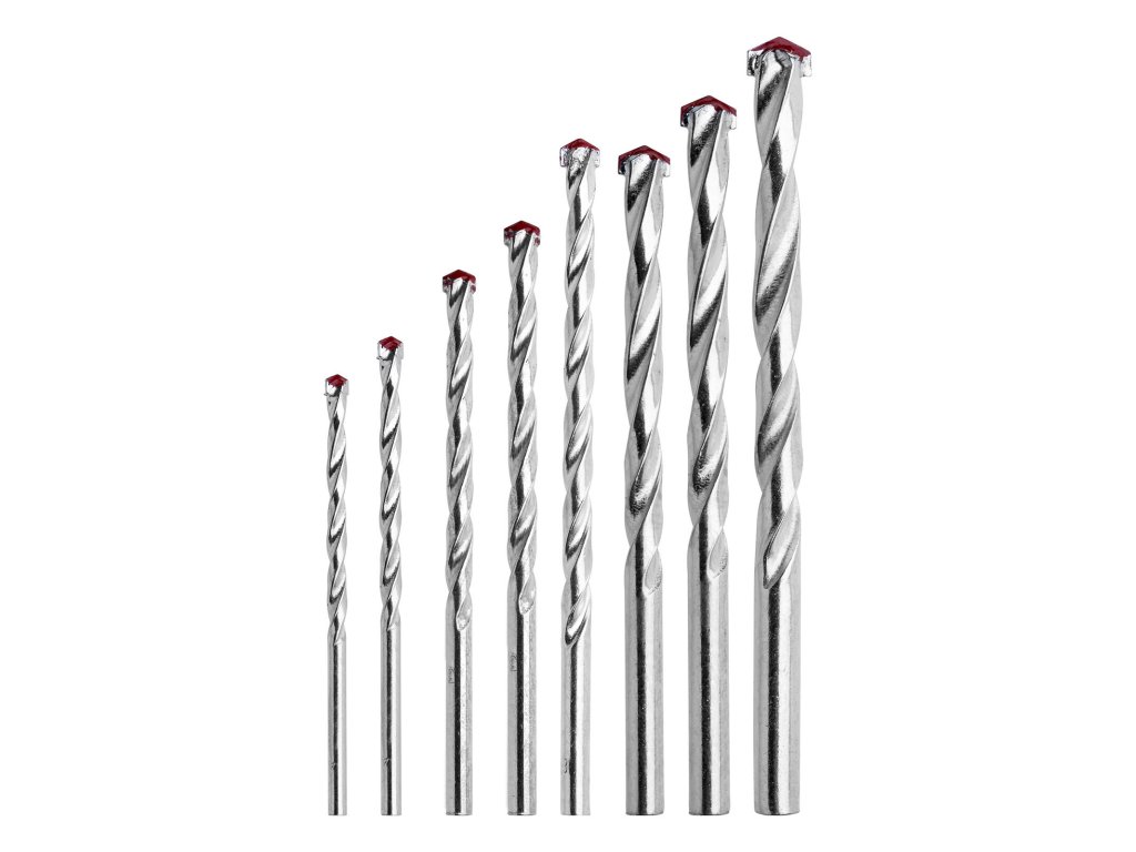 Vrták stavební 3,0 - 10,0 mm, sada 8díl. sada obsahuje 8 dílů: 3 mm, 4 mm, 5 mm, 6 mm, 7 mm, 8 mm, 9 mm, 10 mm materiál: nástrojová ocel upevnění: válcové Vysoce kvalitní vrtáky určené pro vrtání do cihel, zdiva a betonu. Díky vysoce kvalitní slitině jsou vrtáky robustní a odolné proti poškození. Jsou ideální pro všechny stavební a renovační práce, stejně jako pro montáž a údržbu. Vrtáky jsou vhodné pro všechny vrtačky a šroubováky, válcová stopka. Skvělé pro vrtání do zdiva, betonu, žuly a jiného kamene.Doplňkové parametry