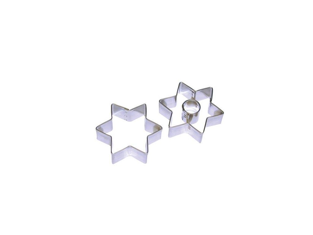 délka: 5 cm materiál: nerez 2-dílná sada Sada nerezových vykrajovátek cukroví se středem HVÉZDIČKA je určena na vykrajování zajímavých tvarů z těsta na cukroví.Doplňkové parametry
