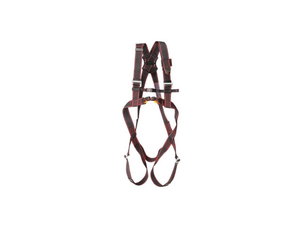- Zachycovací postroj BASIC má zadní a přední kotvící prvek – nastavitelné ramenní a stehenní popruhy – prodloužený popruh k zadnímu záchytnému prvku.