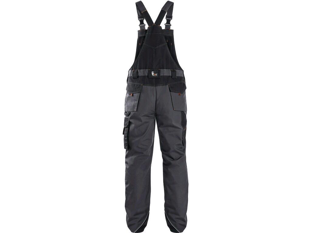 Pánské montérkové kalhoty s náprsenkou, náprsní kapsa s klopou, pas s poutky na opasek, v zadní části guma s knoflíkem pro přizpůsobení velikosti, přední klínové kapsy, multifunkční kapsy na obou stranách, kolena zesílena materiálem 600D polyester s možností vložení kolenních výztuh, dvě zadní kapsy s klopami, spodní část nohavic vyztužena materiálem 600D polyester, šle s gumou vzadu, reflexní doplňky. Doporučené použití: stavebnictví, strojírenství, lehký průmysl, automobilový průmysl, logistika, skladová manipulace, spedice, autoservisy, údržba, montáže, zemědělství, zahrada, hobby.Doplňkové parametry