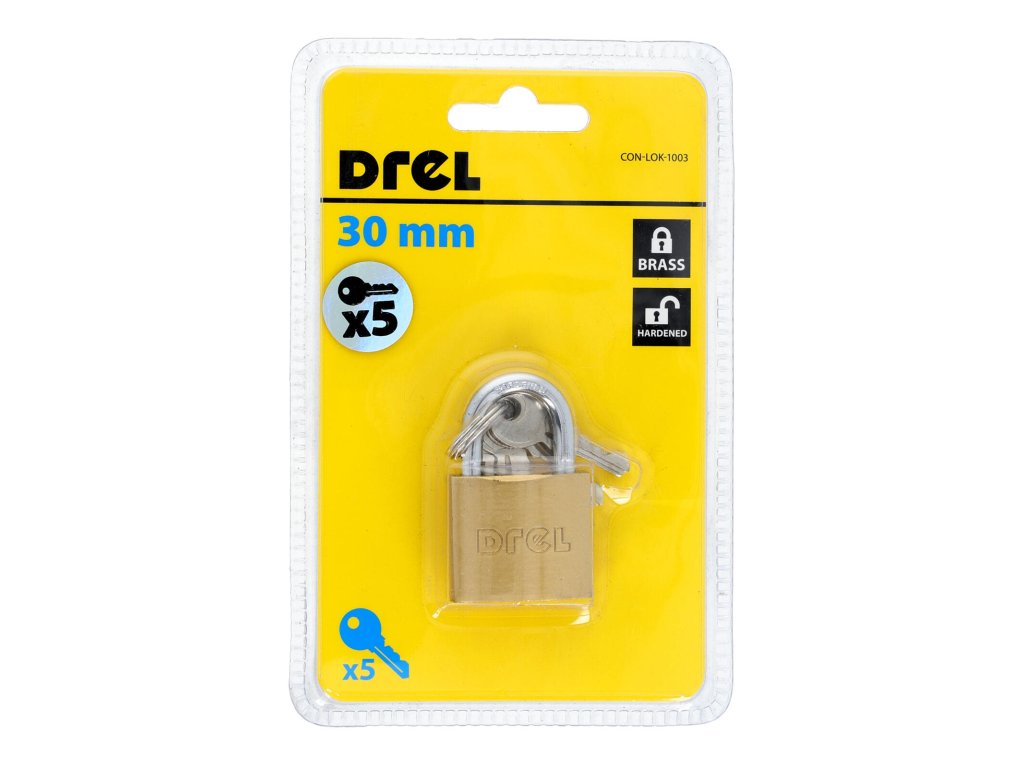 Zámek visací 30 mm, Ms, 5 klíčů. šířka: 30 mm materiál: mosaz 5 klíčů Klasický visací zámek 30 mm je vhodný pro ochranu Vašeho majetku a nejlepší prevencí proti krádeži.Doplňkové parametry