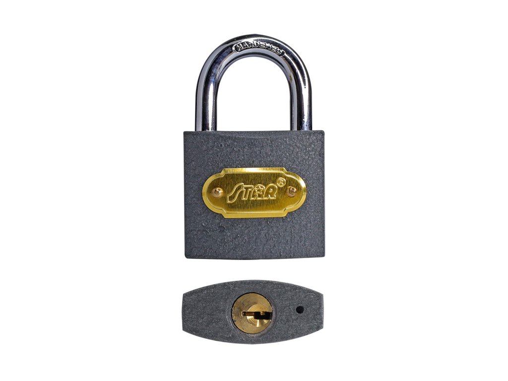 Zámek visací STAR 10HS / 50 mm, Fe, 3 kl. šířka: 50 mm materiál: železo počet klíčů: 3 Železný visací zámek.Doplňkové parametry
