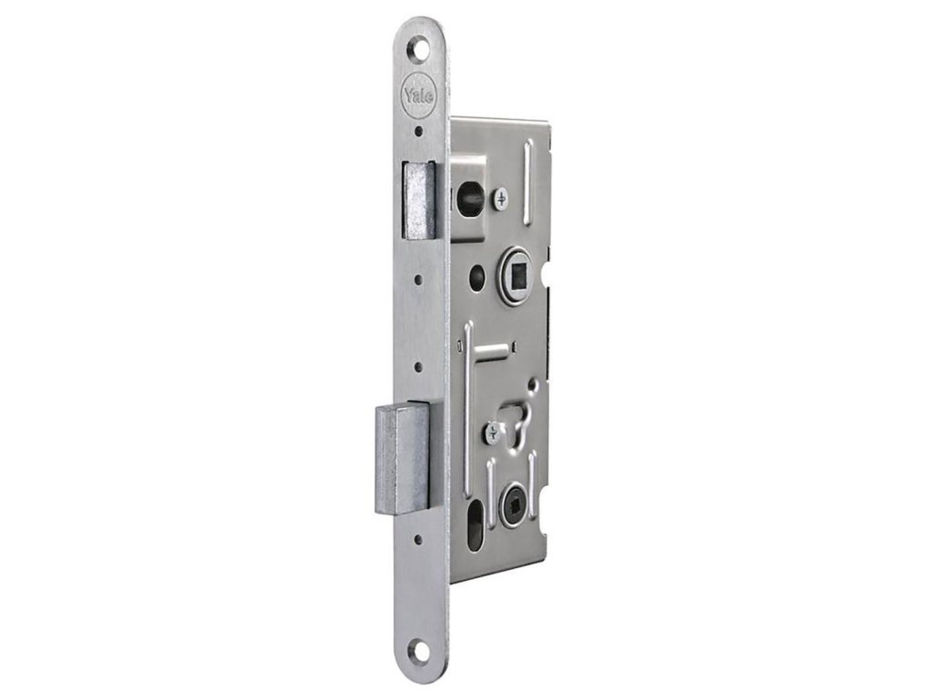 Zámek zadlabací 5220/18N WC. Mechanický zadlabací zámek ovládání WC kličkou 6 mm - jednozápadový, pravo/levý - zamknutí zámku přes spodní ořech 6 mm přes WC kličku - zámek bez převodu (střelku nelze ovládat spodním ořechem) - přeměnu zámku z pravého na levý a naopak umožňuje dělená střelka. Pouhým povolením příslušného šroubu se hlava střelky uvolní, vysune, otočí o 180°, nasune zpět na vodítko střelky a šroubem se utáhne - otvory v bočních deskách o průměru 8 mm umožňují použití dvoudílného kování (rozetové) Rozměry v mm. Rozteč Backset Hloubka zádlabu Šířka čela Požární odolnost 72 40 60 18 NEDoplňkové parametry