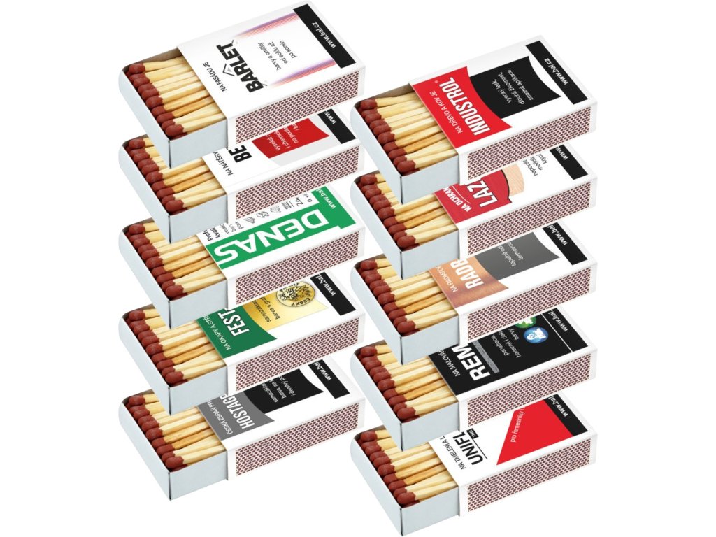 Malé zápalky vhodné pro použití v domácnosti, při grilování, na zahradě, při kempování, turistice. Různé grafické zpracování obalu krabičky zápalek. Délka zápalky je 41-43 mm.