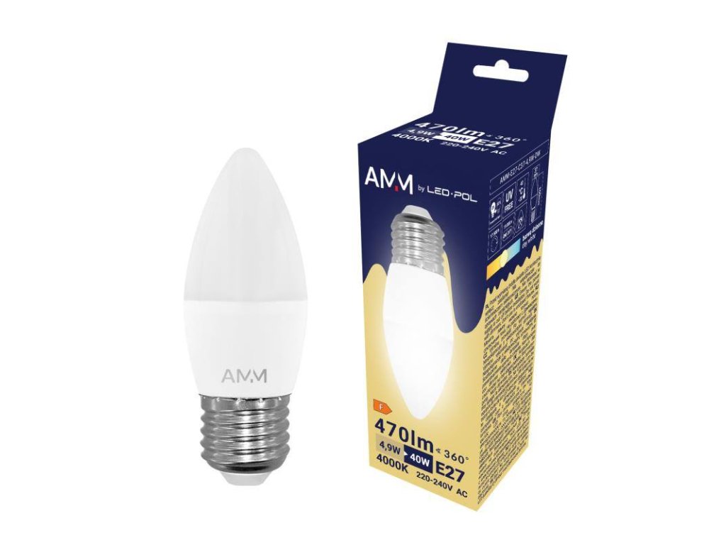 Žárovka AMM-E27-C37-4,9W-DW