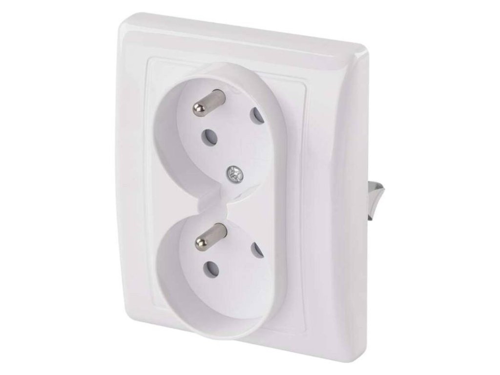 Zásuvka klasická, dvojnásobná, bílá