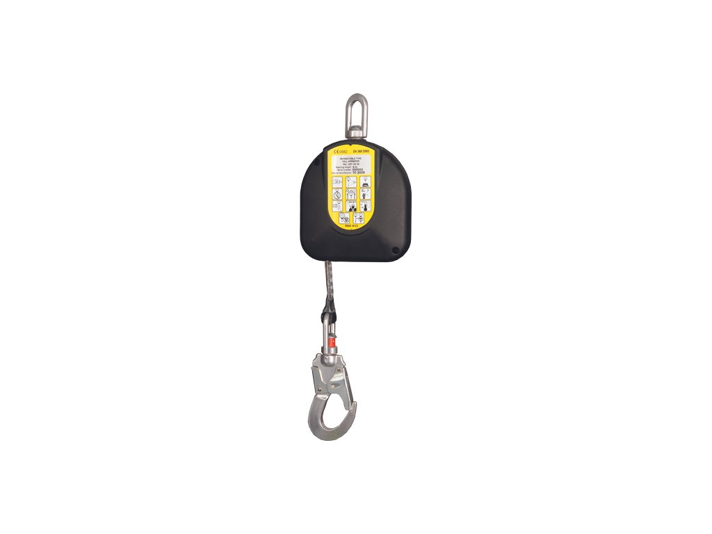 samonavíjecí zachycovací systém WR100 s popruhem z kevlaru; délka 6 m; hmotnost 1,7 kg včetně dvou karabin; dva otočné prvky; signalizace zachycení pádu; splňuje normu EN 360Doplňkové parametry