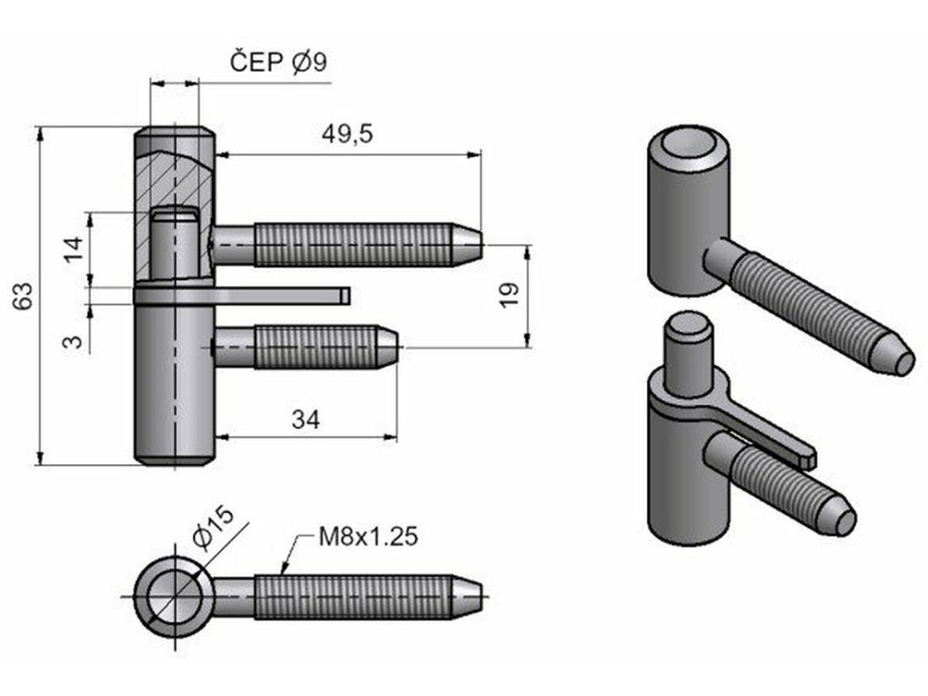 závěs dveřní 60mm zašr.s hřeb. Zn MO (50ks)