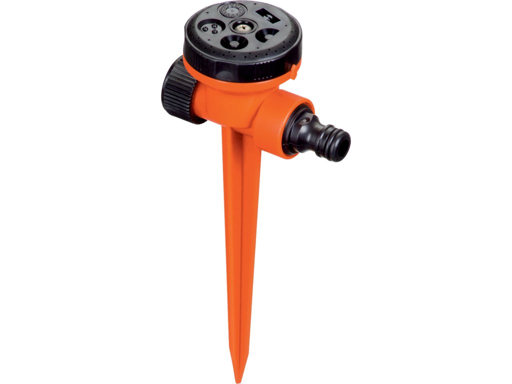 Zavlažovač multifunkční s hrotem z kvalitního plastu, který má pět funkcí kropení. Vhodné pro malé a střední plochy. Maximální průměr zavlažovací plochy 10m.