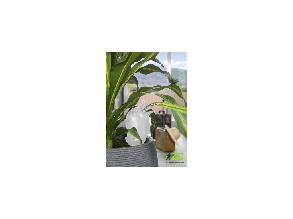 Pomocí hliněného kužele zapíchnutého do země zavlažovač ve tvaru ptáčka postupně zásobuje rostlinu vodou a umožňuje méně časté zalévání.