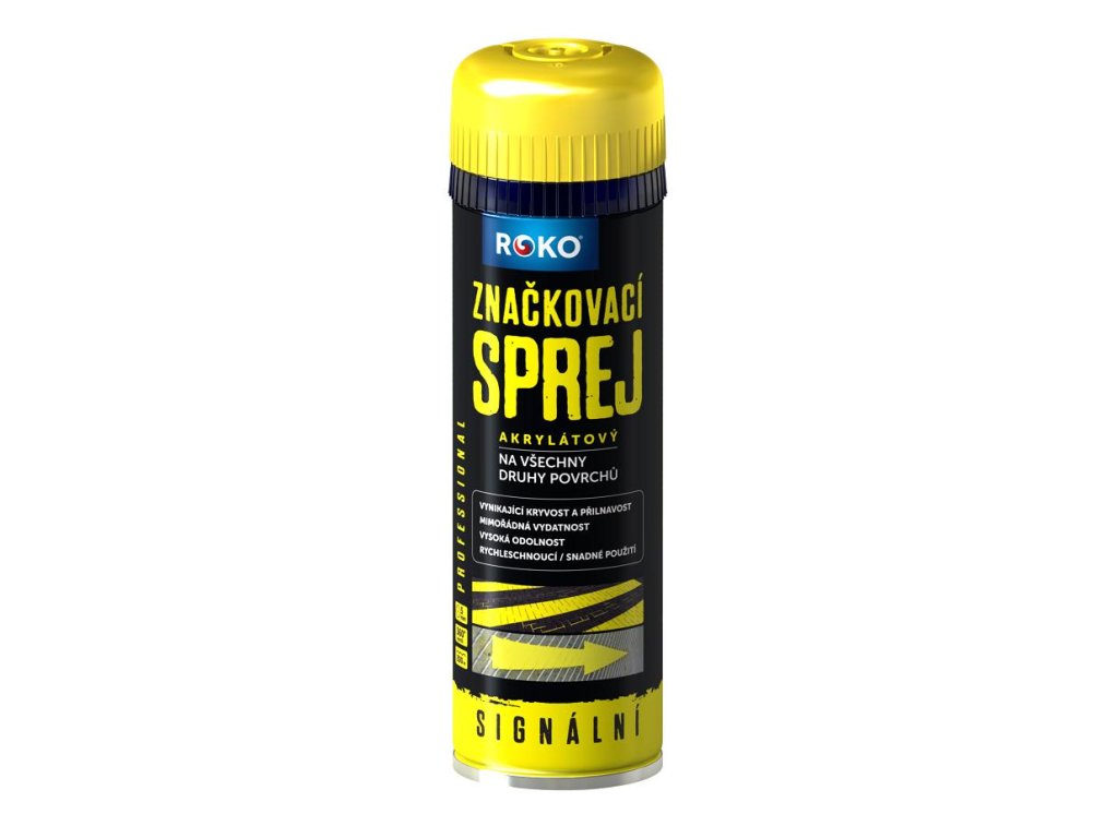Speciální akrylátová barva na značkování v interiéru i exteriéru. Barva má vysokou odolnost vůči vlivům počasí, je odolná proti mechanickému zatížení a opotřebování třením, má vysokou krycí schopnost a přilnavost na všem i na mokrých podkladech. Bezolovnatá. Sprej má speciální ventil, který umožňuje stříkat ve všech směrech. Vhodný na označování stromů, zdí, parkovacích ploch, sportovních a dětských hřišť, svodidel, průmyslových prostor, potrubí, ulic, kamene, zeminy, asfaltu a trati.Suchý na dotek za cca 5 minut, proschlý za 24 hodin.
