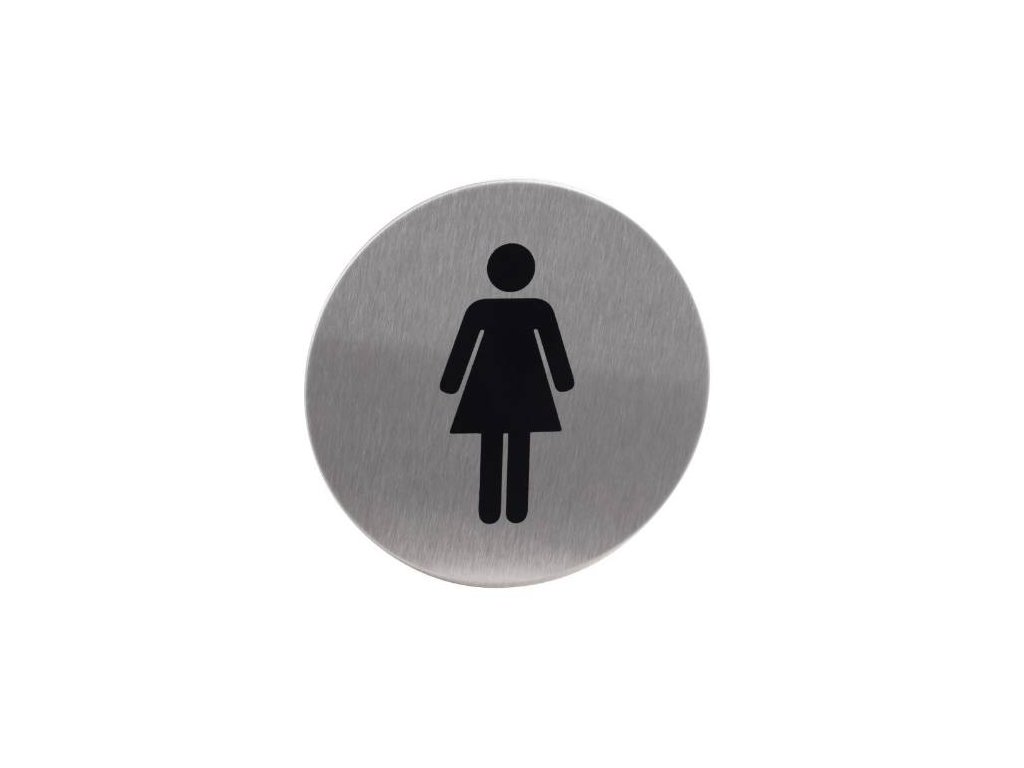 Znak rozlišovací "WC-ženy", Ø 75 mm, samolepící, nerez